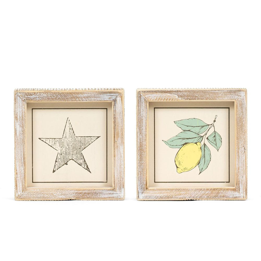 5x5 Reversible Wood Frame Sign - Star/Lemon