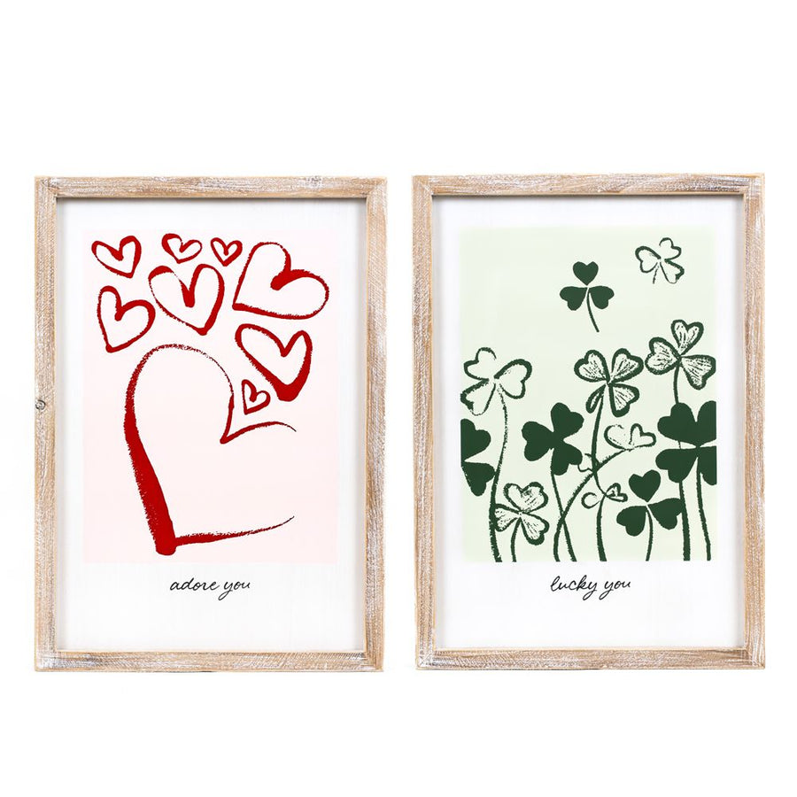 14x14 Reversible Wood Frame Sign - Heart/Clover