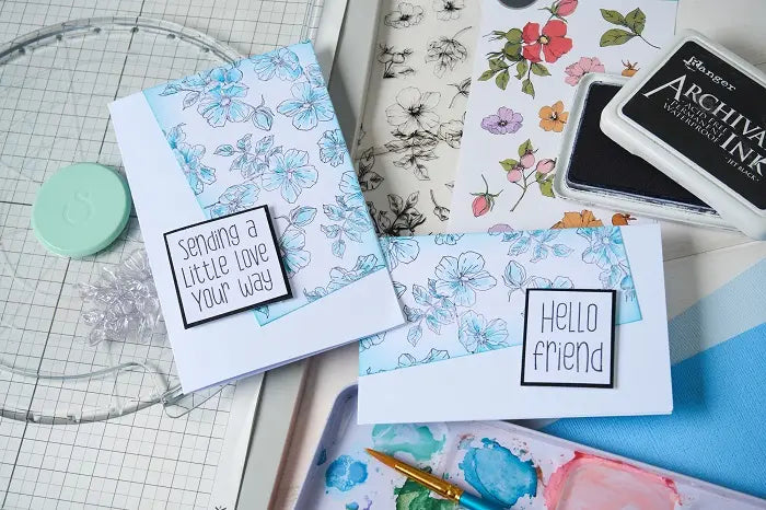 For most stamping solutions, we carry work for both scrapbooking and card-making, but for this example, we'll use a card project. With cling rubber stamps, you just need an acrylic block for your base, and you can get to work stamping: