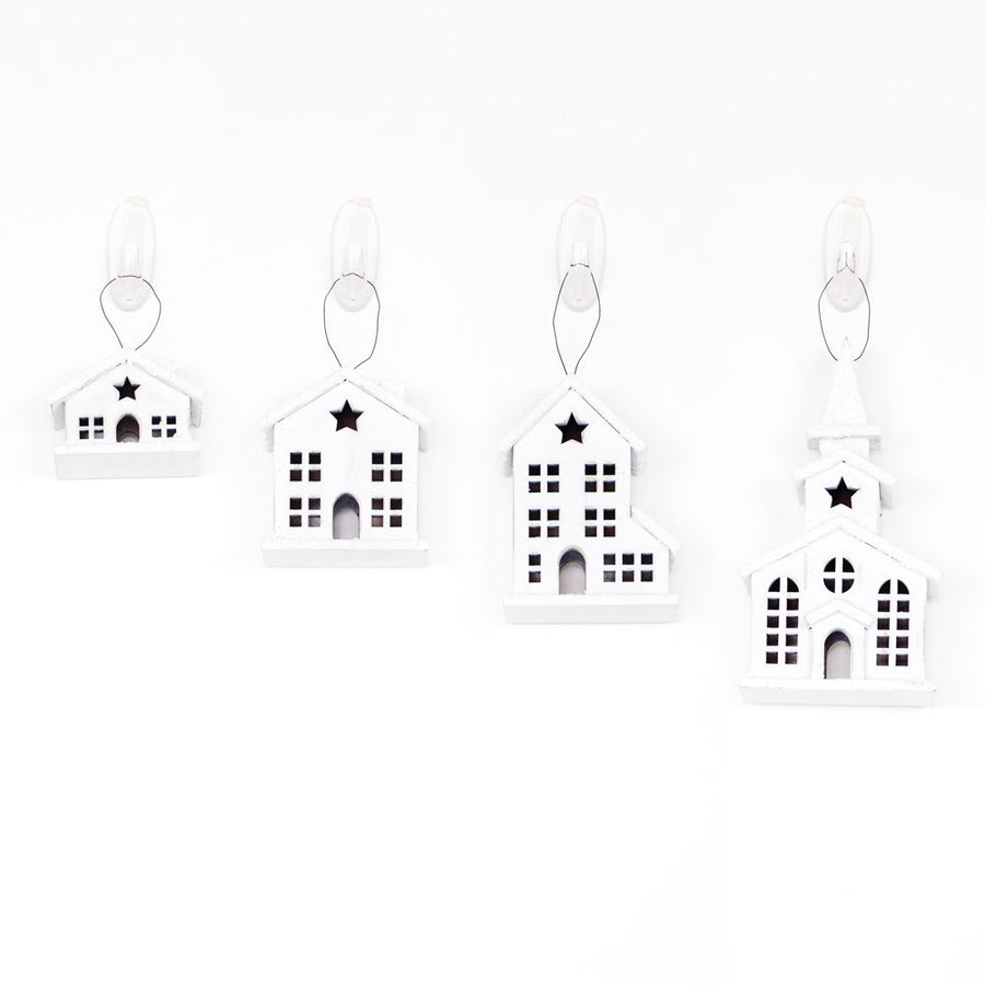 Village Wooden Ornament Set of 4