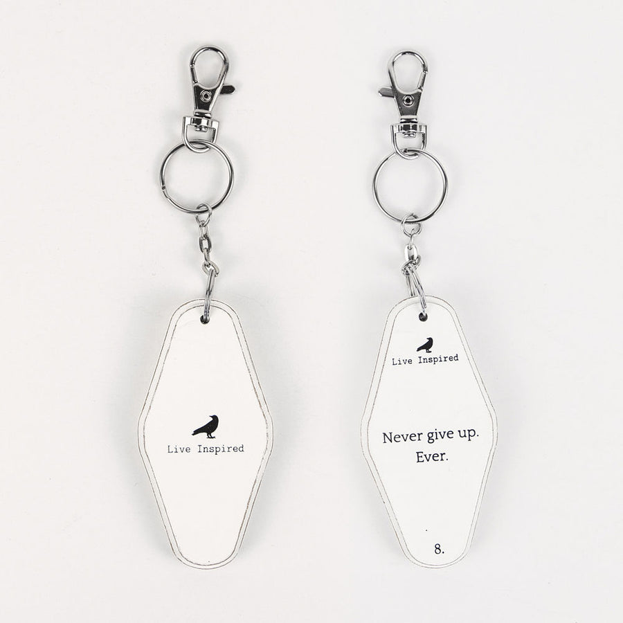Never Give Up Wood Keychain