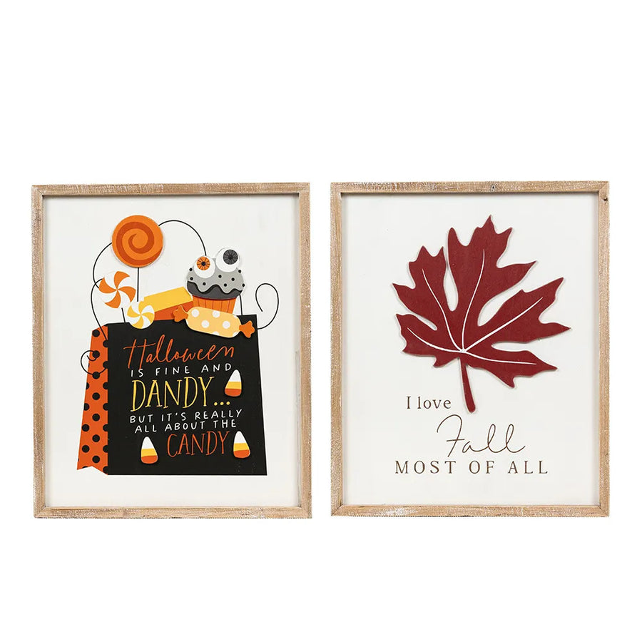 Reversible Wood Leaf Decor Set - Sweet & Spooky