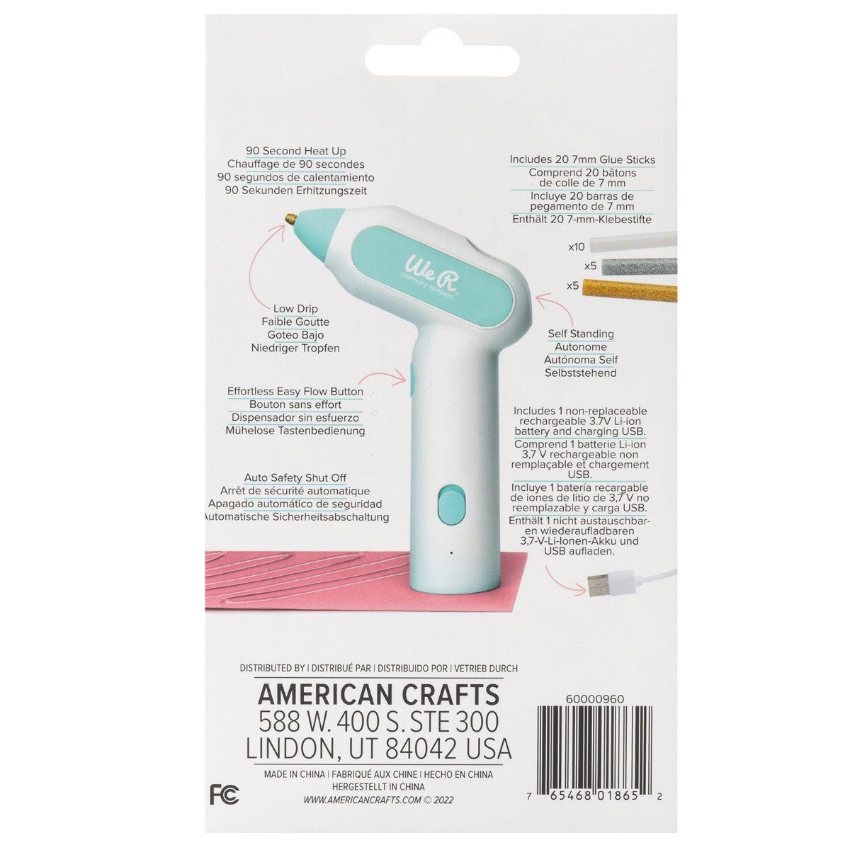 - Includes: 1 Creative Flow Glue Gun, 10 Clear Glue Sticks, 5 Gold Glitter Glue Sticks, 5 Silver Glitter Glue Sticks, 1 USB Charging Cord ; Its from the Creative Flow Collection ; This glue gun is cordless and rechargeable ; Heats up in 90 seconds