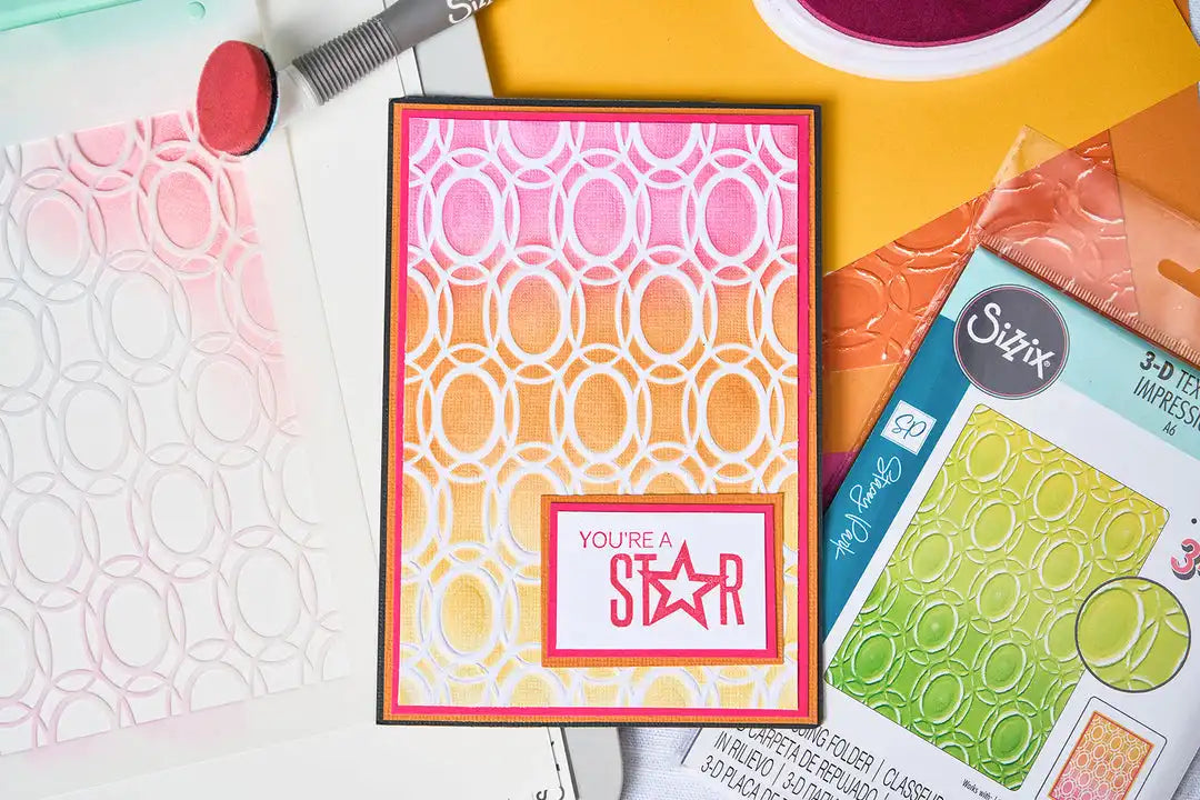 Discount available while supplies last on the Sizzix Golden Rings 3-D Textured Impressions Embossing Folder - Cosmopolitan by Stacey Park at CraftDirect online. Embossing folders work with die-cutting machines to create embossed designs that give project material texture. Stacey Park's latest design screams with enthusiasm and dares crafters to play, explore, and blossom creatively. Introducing the embodiment of class, this embossing folder is your golden ticket to injecting a hint of opulence and refinement into your creations. Stamp your projects with the shimmer of golden rings.