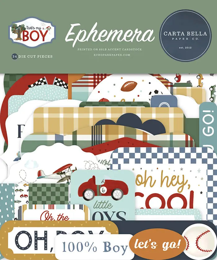 Buy the Carta Bella That's My Boy Ephemera with CraftDirect.com. This pack of die cut embellishments will add more fun detail to your paper projects.