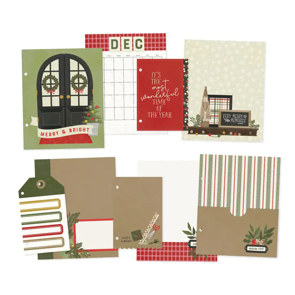 This 6x8 binder comes ready to use with 10 pocket pages (3 each of 2 designs in 6x8 and 4x6/4x6, and 2 each of 2 designs in 3x4 and 3x4/4x6), plus 8 SN@P! pages and 1 pocket. Its thoughtful layout makes it easy to organize and embellish your holiday keepsakes while leaving room for creative flair.